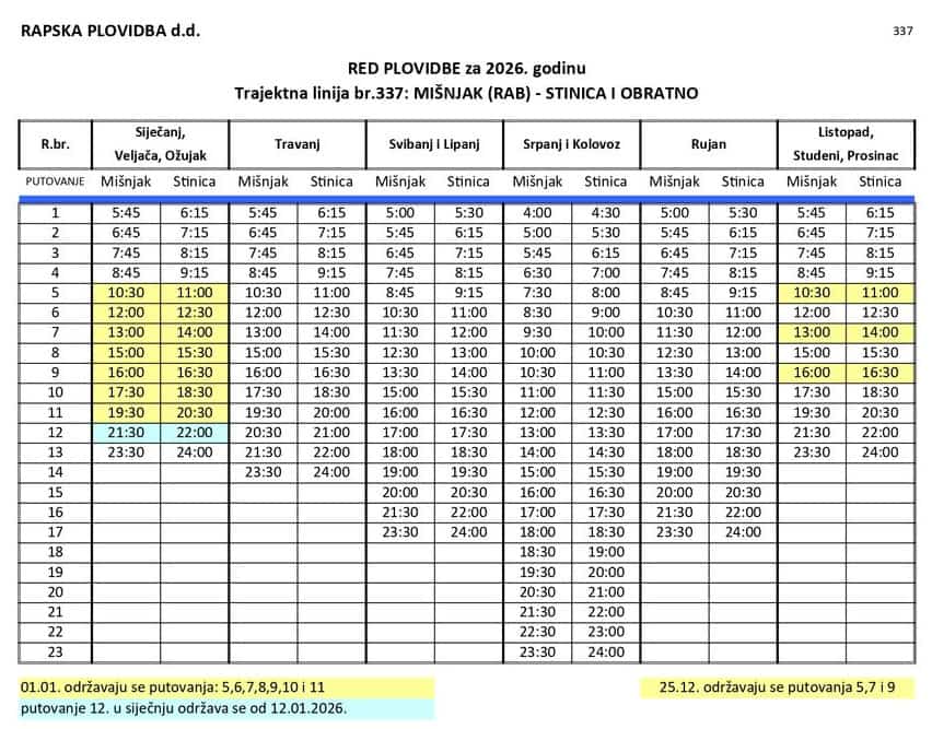 trajekna linija Mišnjak (RAB) - Stinica